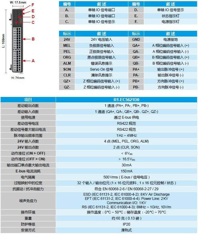 EtherCAT 單軸脈沖接口模塊 - R1-EC5621D0