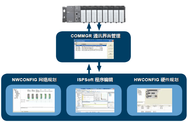 整合運動控制編輯:ISPSoft V3將邏輯編程與運動編程整合在同一套軟件上,并提供符合國際標準規格 PLCopen® 的功能塊以及臺達提供的豐富功能塊